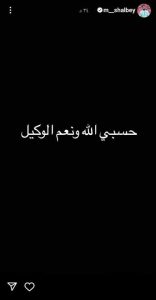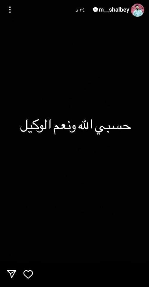 وكتب مصطفى شلبي عبر خاصية الاستوري على موقع التواصل الإجتماعي إنستجرام: “حسبي الله ونعم الوكيل”