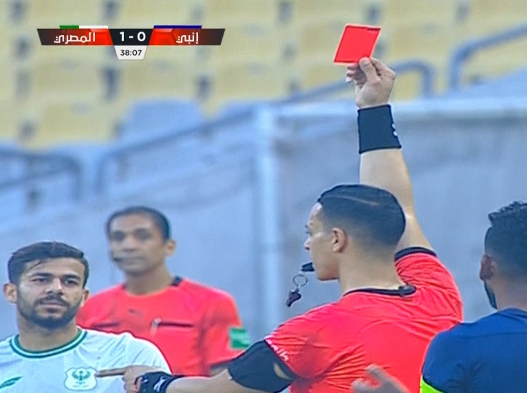شهدت مباراة الفريق الأول لكرة القدم بنادي المصري ونظيره إنبي طرد اللاعب مروان حمدي مهاجم الفريق البورسعيدي بعد تدخله العنيف على لاعب الفريق البترولي.