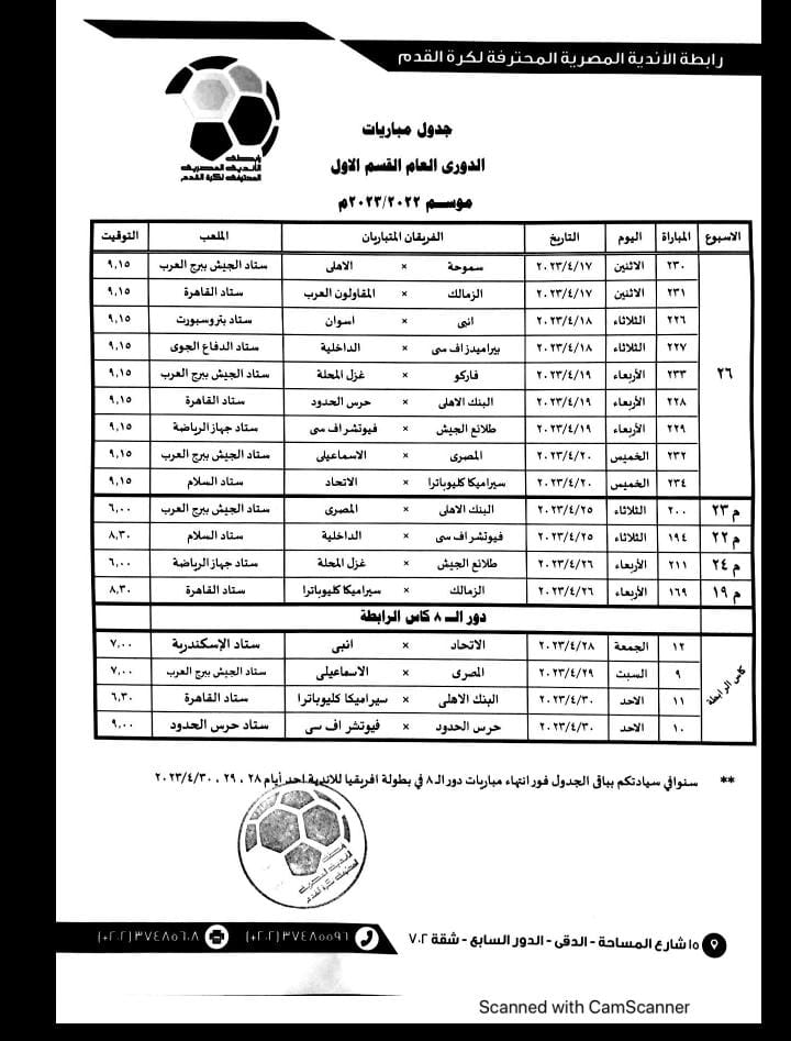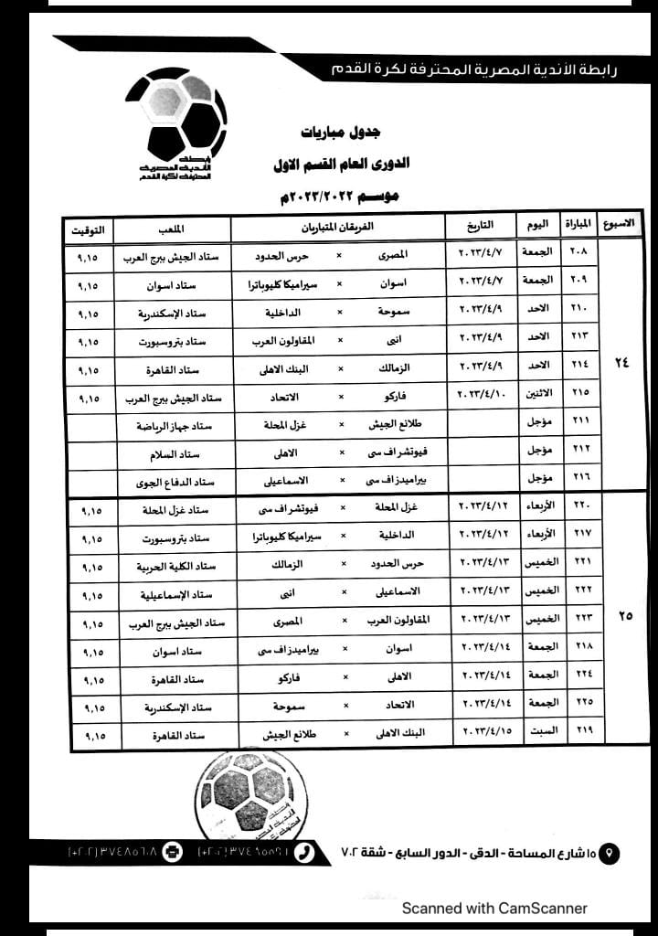 فيما حدد الاتحاد المصري عن مواعيد مباريات الجولات 24 و25 و26 من بطولة الدوري المصري الممتاز.