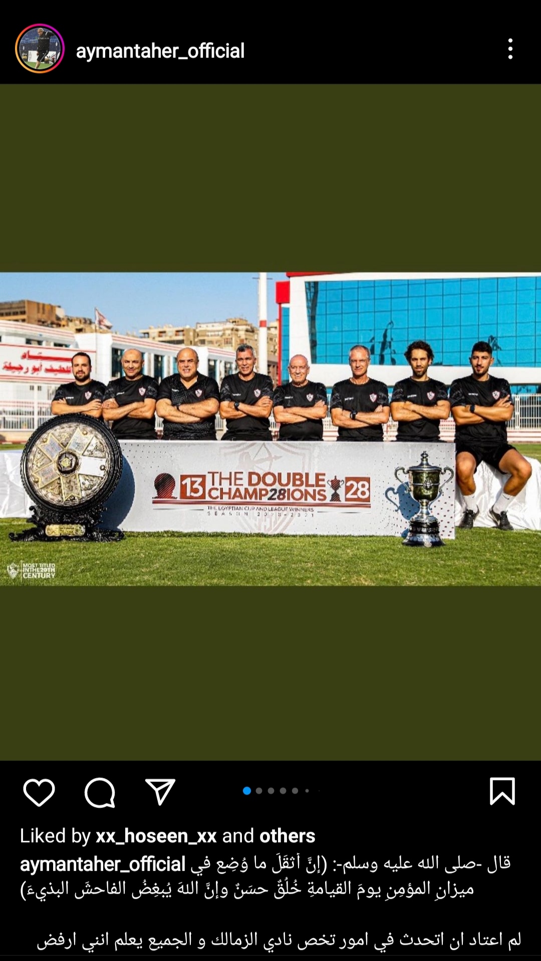 وكتب أيمن طاهر عبر صفحته الشخصية على موقع التواصل الإجتماعي إنستجرام: “قال صلى الله عليه وسلم (إنَّ أثقَلَ ما وُضِع في ميزانِ المؤمِنِ يومَ القيامةِ خُلُقٌ حسَنٌ وإنَّ اللهَ يُبغِضُ الفاحشَ البذيءَ).”