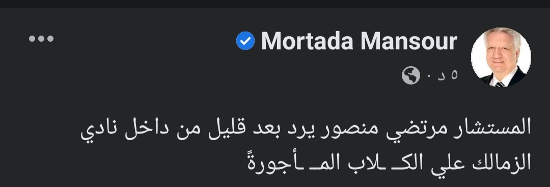 وأضاف:”المستشار مرتضى منصور يرد بعد قليل من داخل نادي الزمالك على الكــ ـلاب المــ ـأجورةً”.