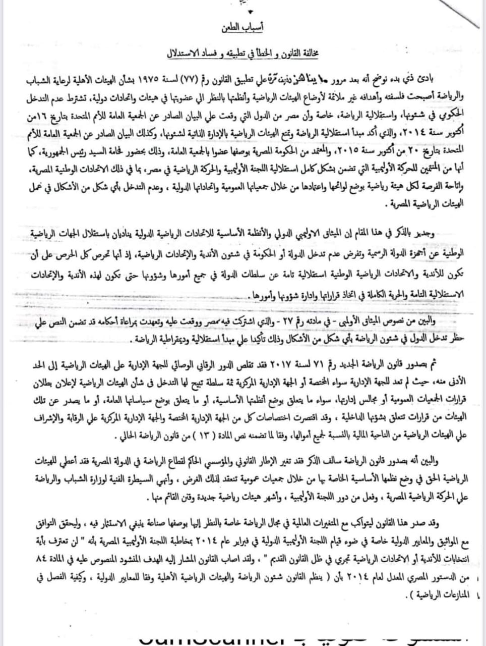 وتقدم بالطعن عن طريق هيئة قضايا الدولة، نائبة عن أشرف صبحي وزير الشباب والرياضة، ومديرية الشباب والرياضة في الجيزة.