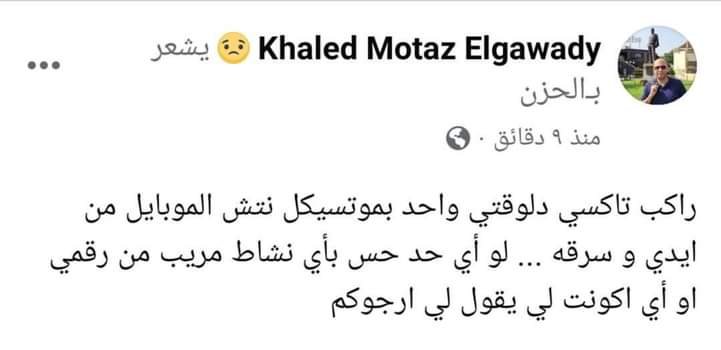 وكشف خالد معتز، عبر حسابه الرسمي على موقع التواصل الاجتماعي فيس بوك، أنه تعرض لسرقة هاتفه المحمول أثناء تواجده في إحدى سيارات الأجرة.
