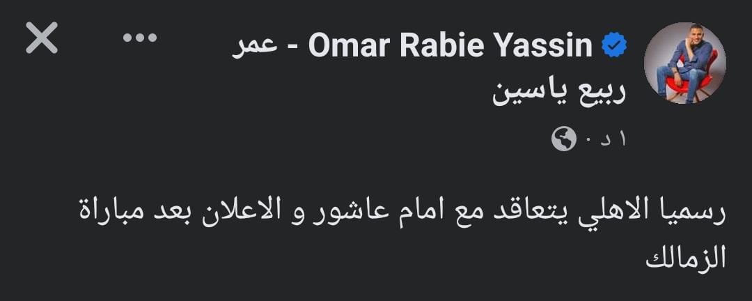 وكتب عمر ربيع ياسين عبر حسابه الرسمي على موقع التواصل الاجتماعي “فيس بوك”:” رسميًا الاهلي يتعاقد مع إمام عاشور والإعلان بعد مباراة القمة”.