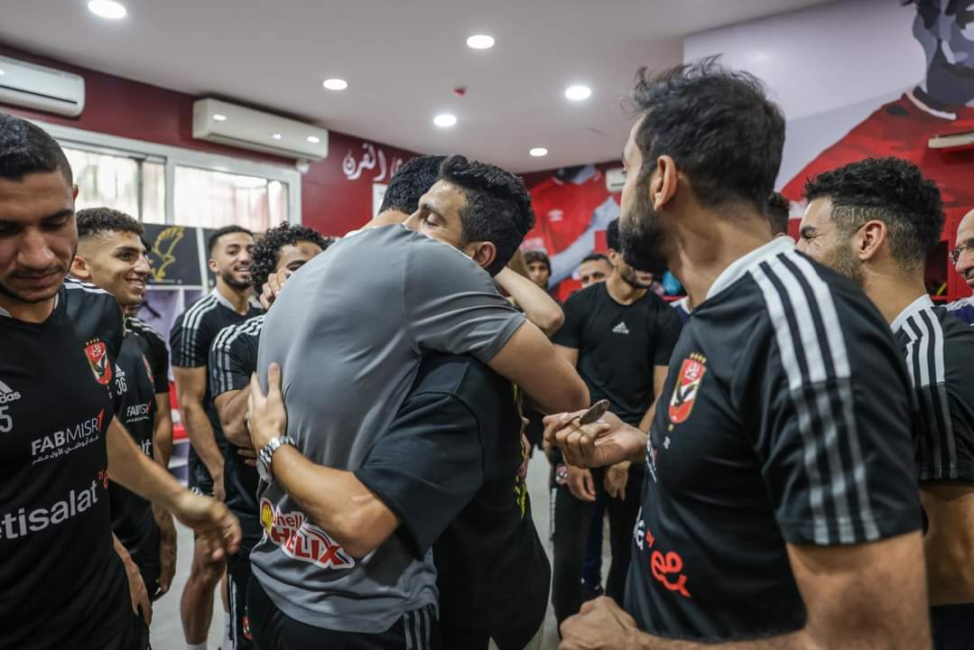 وأقام لاعبو الاهلي والجهاز الفني والإداري، حفلة وداع لقائد القلعة الحمراء أيمن أشرف، لتوديعه بعد السنوات التي قضاها داخل جدران النادي.