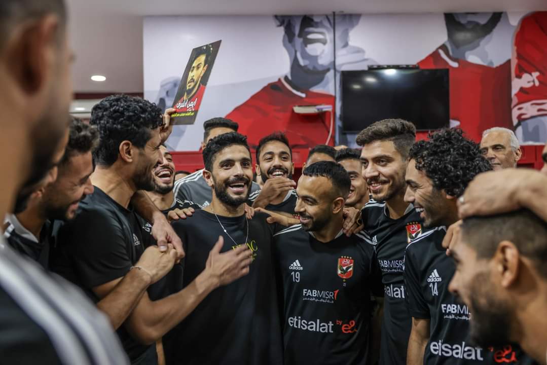 وأقام لاعبو الاهلي والجهاز الفني والإداري، حفلة وداع لقائد القلعة الحمراء أيمن أشرف، لتوديعه بعد السنوات التي قضاها داخل جدران النادي.