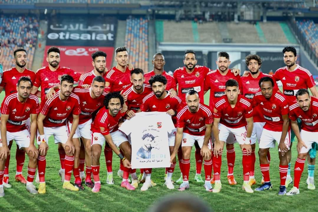 وظهر لاعبو النادي الاهلي رفقة مروان عيطة قبل انطلاق أحداث المباراة بقميص عليه صورة لاعب وسط القلعة الحمراء مع والده وقد كتب عليها “الله يرحمك ياغالي.. ادعوله بالرحمة”.