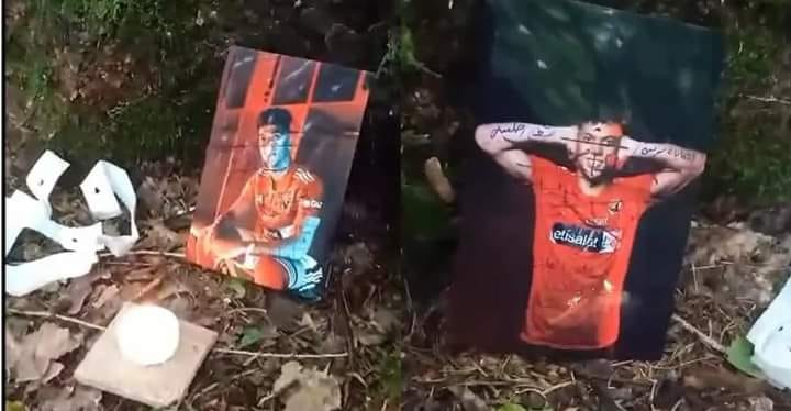 ووجد أهالي إحدى القرى صورة لـ إمام عاشور لاعب النادي الاهلي الجديد، بقميص القلعة الحمراء، والتي تحمل العديد من الرموز الغريبة، وعليها بعض العبارات الغريبة.