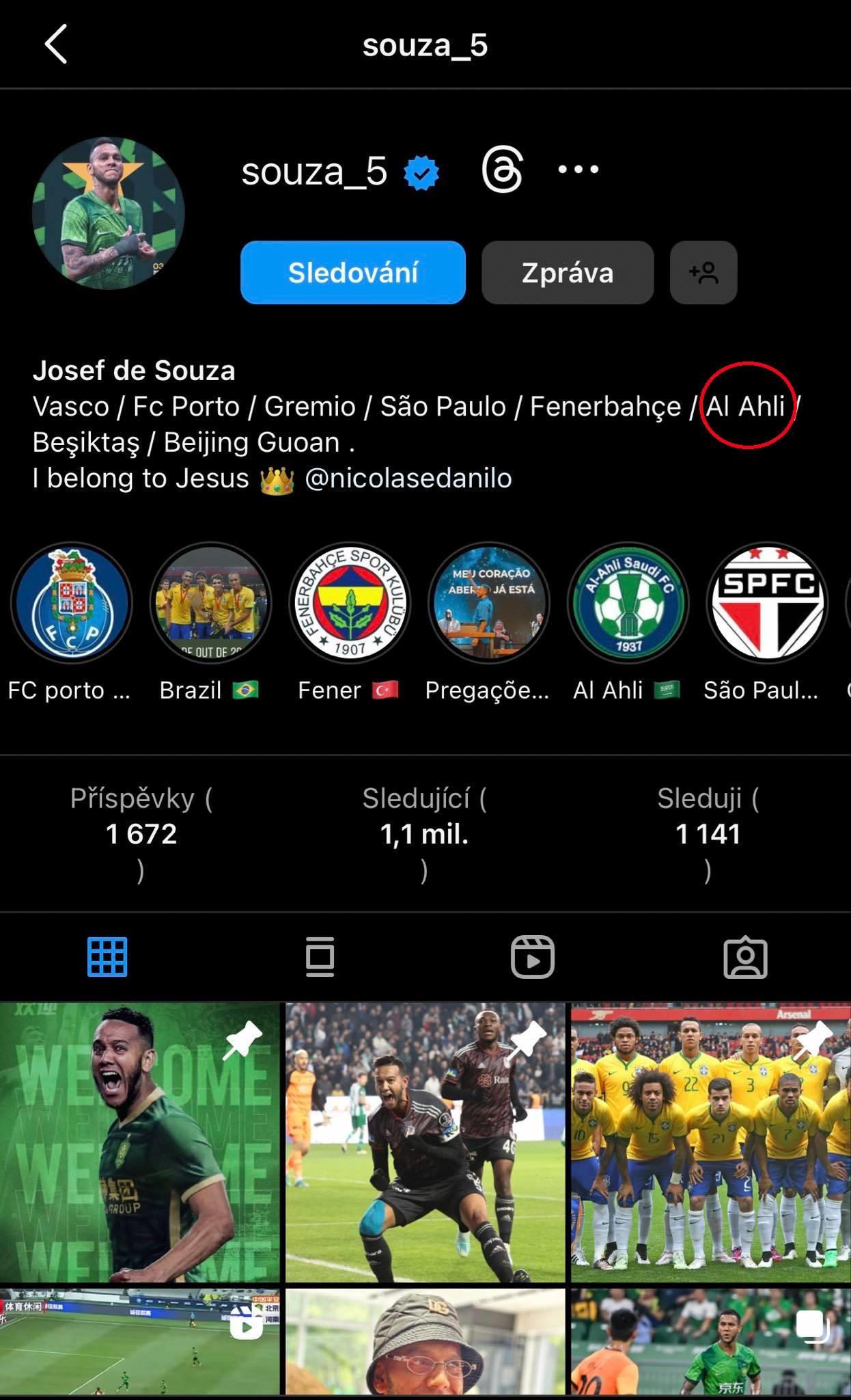 حقيقة اضافة سوزا إسم الاهلي على حسابه بإنستجرام