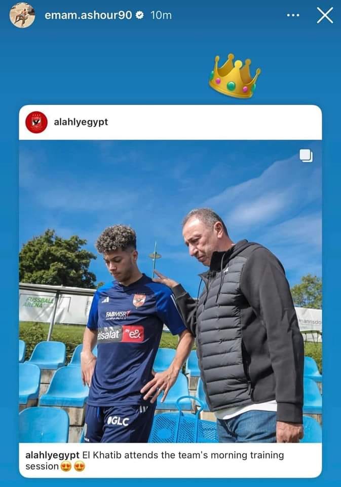 ونشرت الصفحة الرسمية للنادي الاهلي صورة محمود الخطيب مع إمام عاشور، في معسكر الفريق الخارجي في النمسا، لتحظى على إعجاب الملايين من عشاق المارد الأحمر.