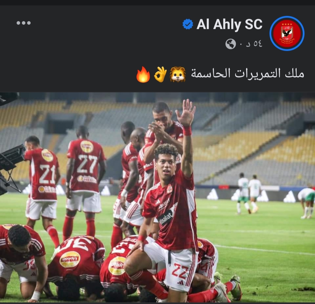 ونشر الحساب الرسمي للنادي الاهلي عبر مواقع التواصل الاجتماعي “فيس بوك” صورة لـ إمام عاشور من المباراة وعلق عليها:” ملك التمريرات الحاسمة”.