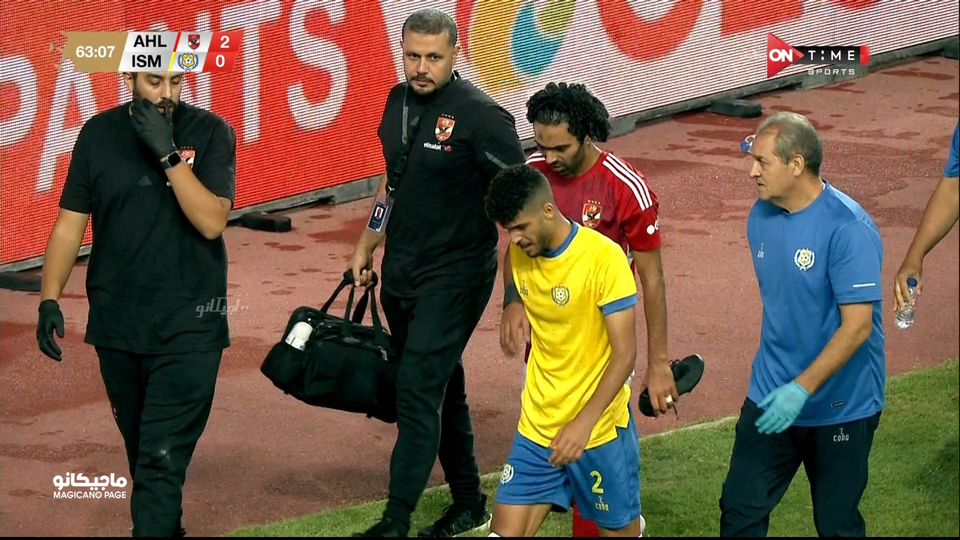 وشهدت الدقيقة 64 إصابة حسين الشحات، ليغادر مباراة الاهلي والإسماعيلي رفقة الجهاز الطبي.