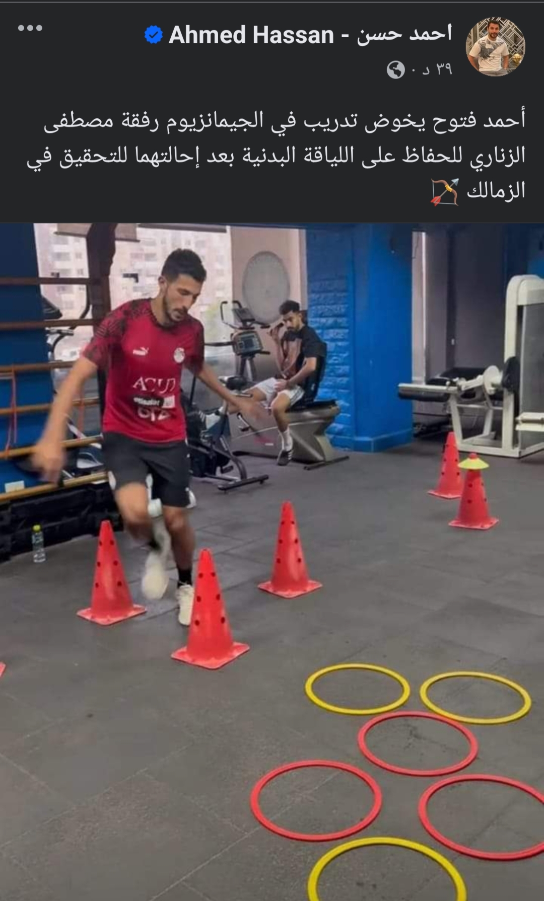 وحرص أحمد فتوح رفقة مصطفى الزناري، على خوض تدريبات في الجيمانزيوم، للحفاظ على اللياقة البدنية بعد إحالتهما للتحقيق في الزمالك.