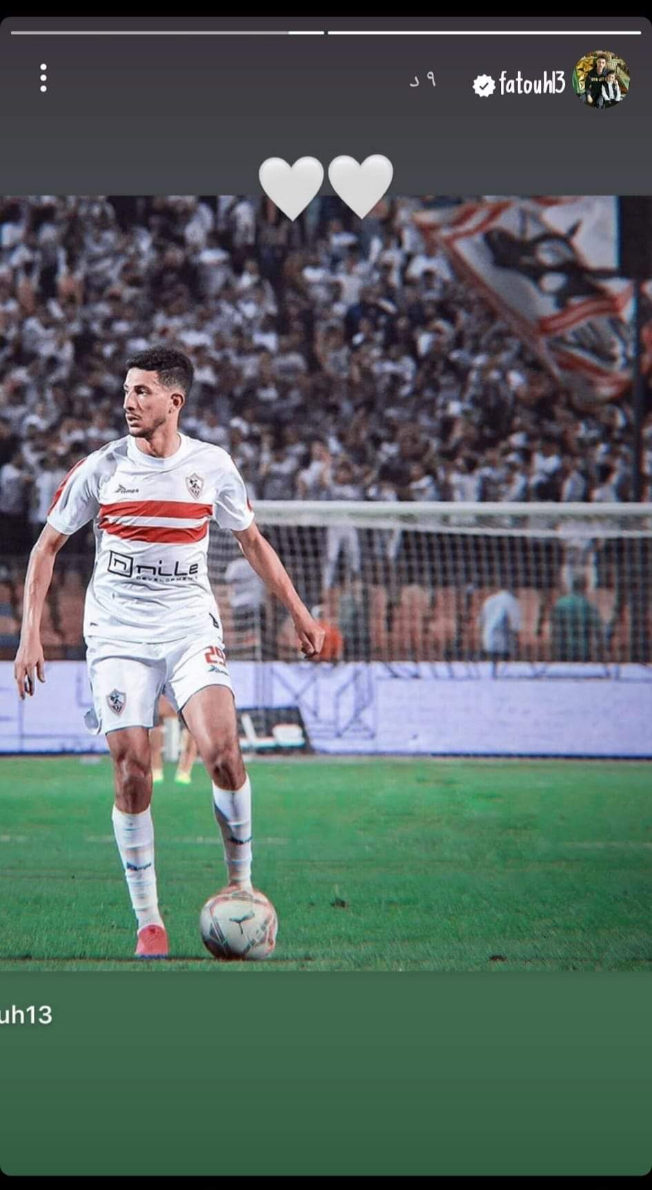 ونشر فتوح صورة على حسابه الشخصي عبر موقع التواصل الاجتماعي “انستجرام”، وخلفه جماهير الزمالك خلال إحدى المباريات ووضع قلوب بيضاء عليها.