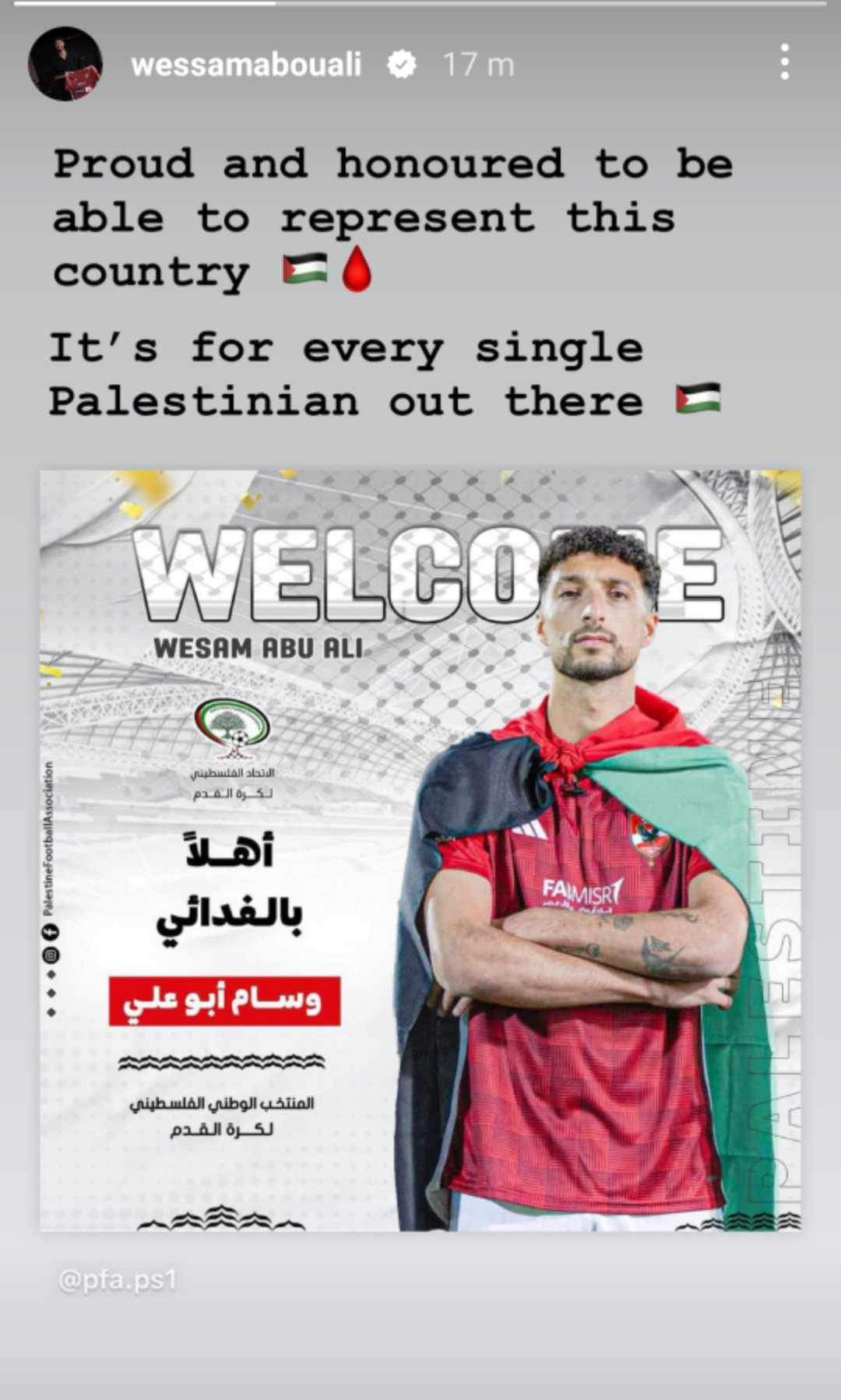 وكتب الاتحاد الفلسطيني عبر حسابه الرسمي على موقع التواصل الإجتماعي “إكس”: “رحبوا معنا بالفدائي، وسام أبو علي”.