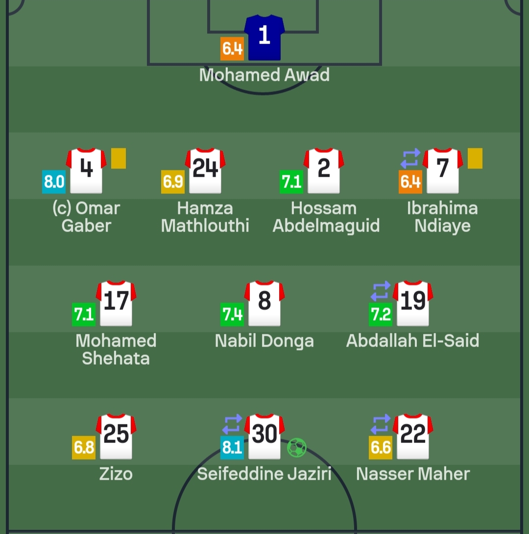 وبحسب سوفا سكور، فإن سيف الجزيري أفضل لاعب في اللقاء بتقييم 8.1، يليه عمر جابر بـ8.0 درجة، ثم نبيل دونجا بـ7.4.