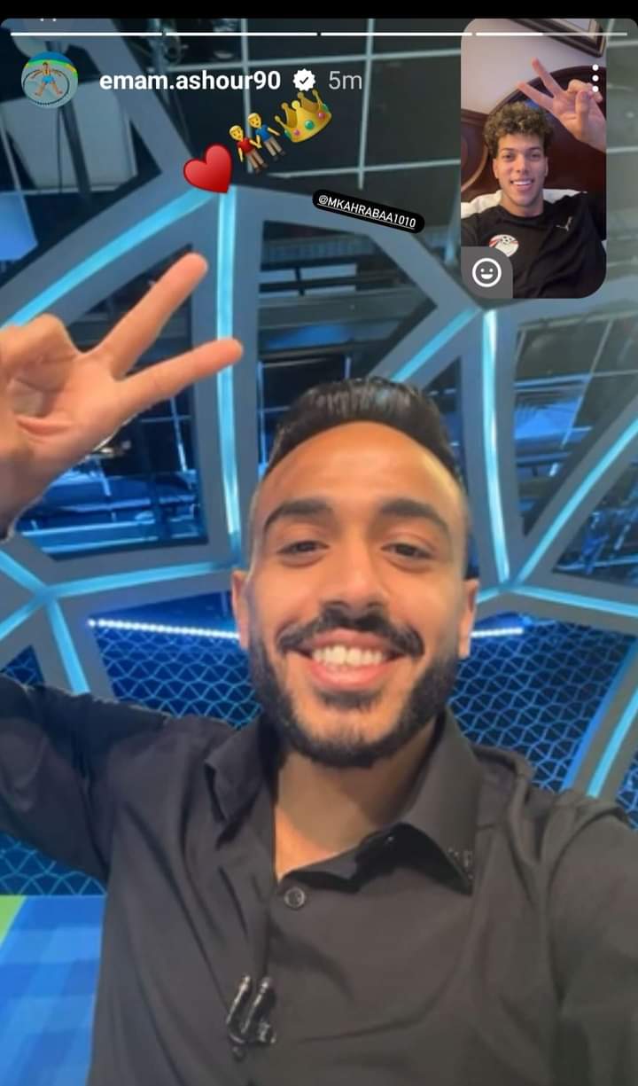 ونشر إمام عاشور ستوري عبر حسابه الرسمي على موقع التواصل الاجتماعي انستجرام، يكشف خلاله تواصله مع كهربا قبل انطلاق لقاء الأخير الإعلامي، وكتب: “الملك”.
