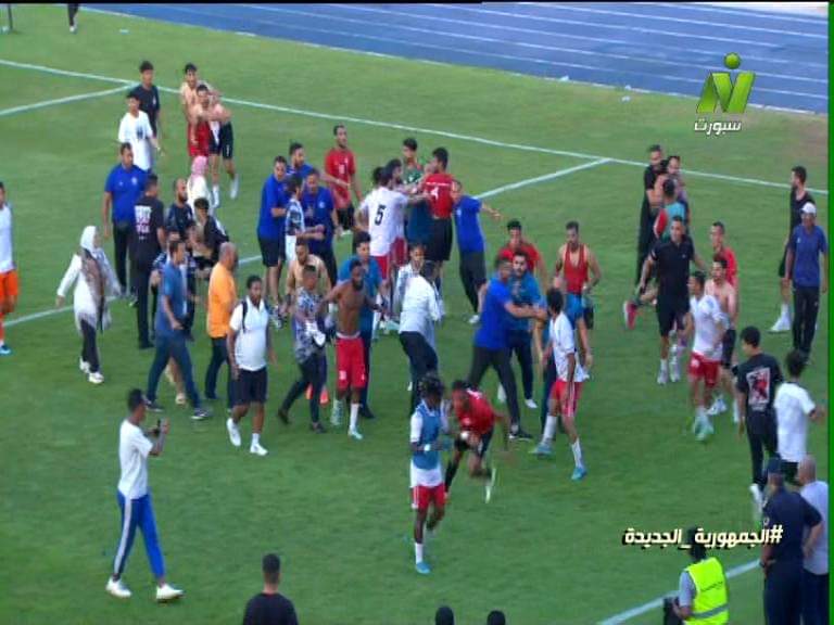 وتطور الأمر إلى تدخل بعض مسؤولي الفريقين، مما أدى إلى تفاقم الأزمة وحرصت قوات الأمن على التدخل لفض الاشتباكات وإعادة الهدوء إلى الملعب.