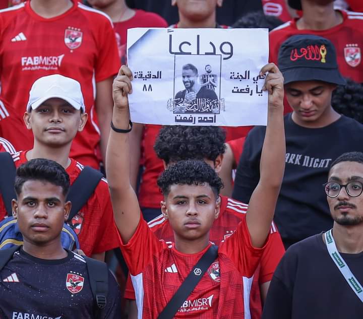 قامت جماهير الفريق الأول لكرة القدم بالنادي الاهلي بنعي وفاة أحمد رفعت لاعب مودرن سبورت، خلال مواجهة طلائع الجيش في الدوري.