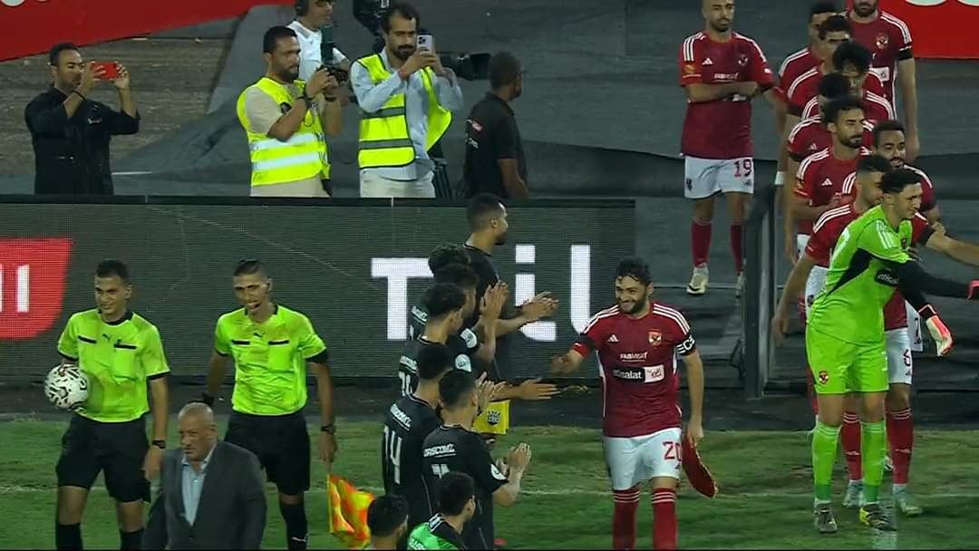 أقام لاعبو نادي زد، ممر شرفي لفريق، الاهلي بعد التتويج ببطولة الدوري المصري الممتاز قبل مواجهتهما الان.