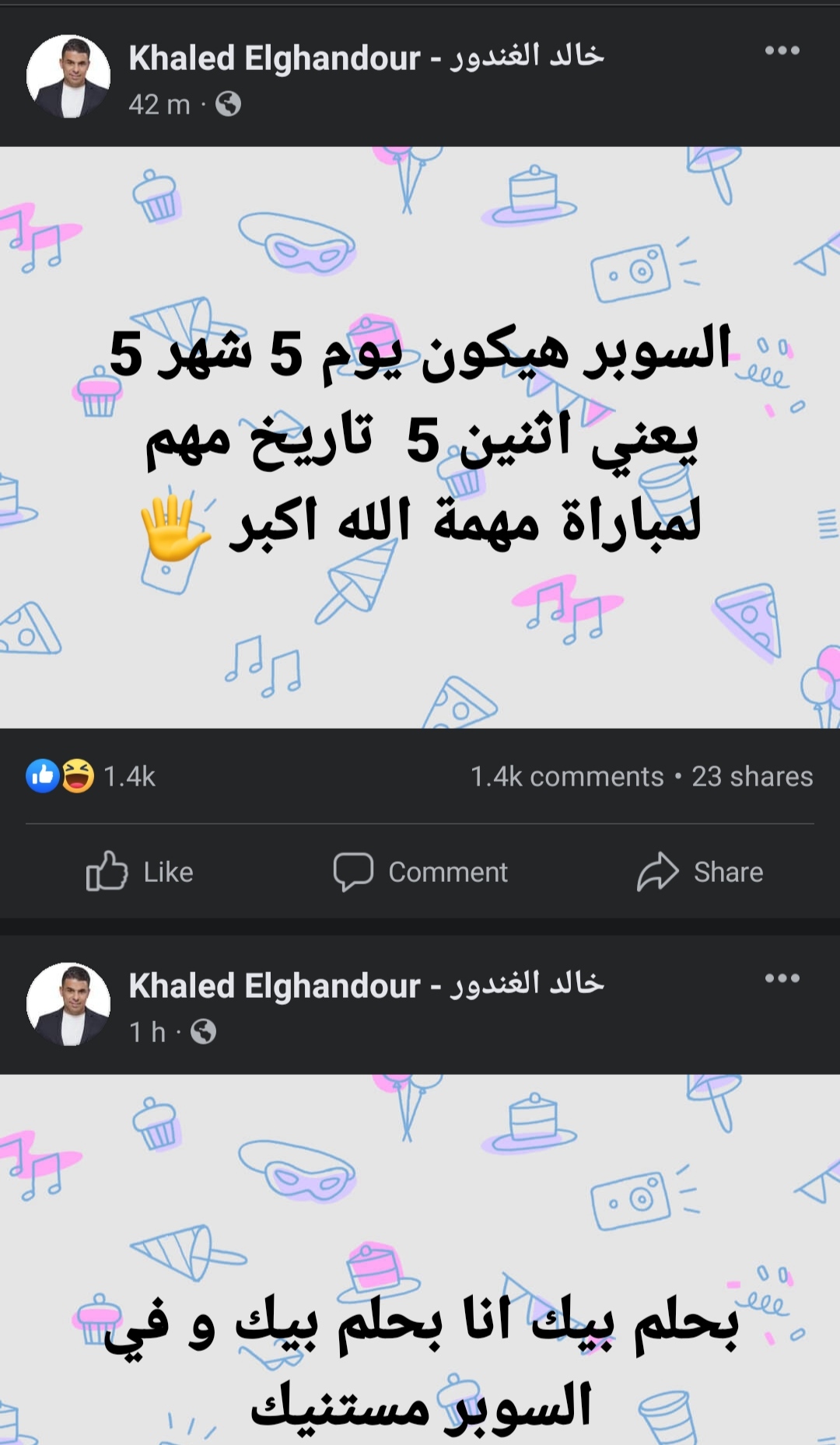 وقال خالد الغندور عبر صفحته الشخصية على موقع التواصل الإجتماعي فيسبوك: “بحلم بيك انا بحلم بيك و في السوبر مستنيك”.