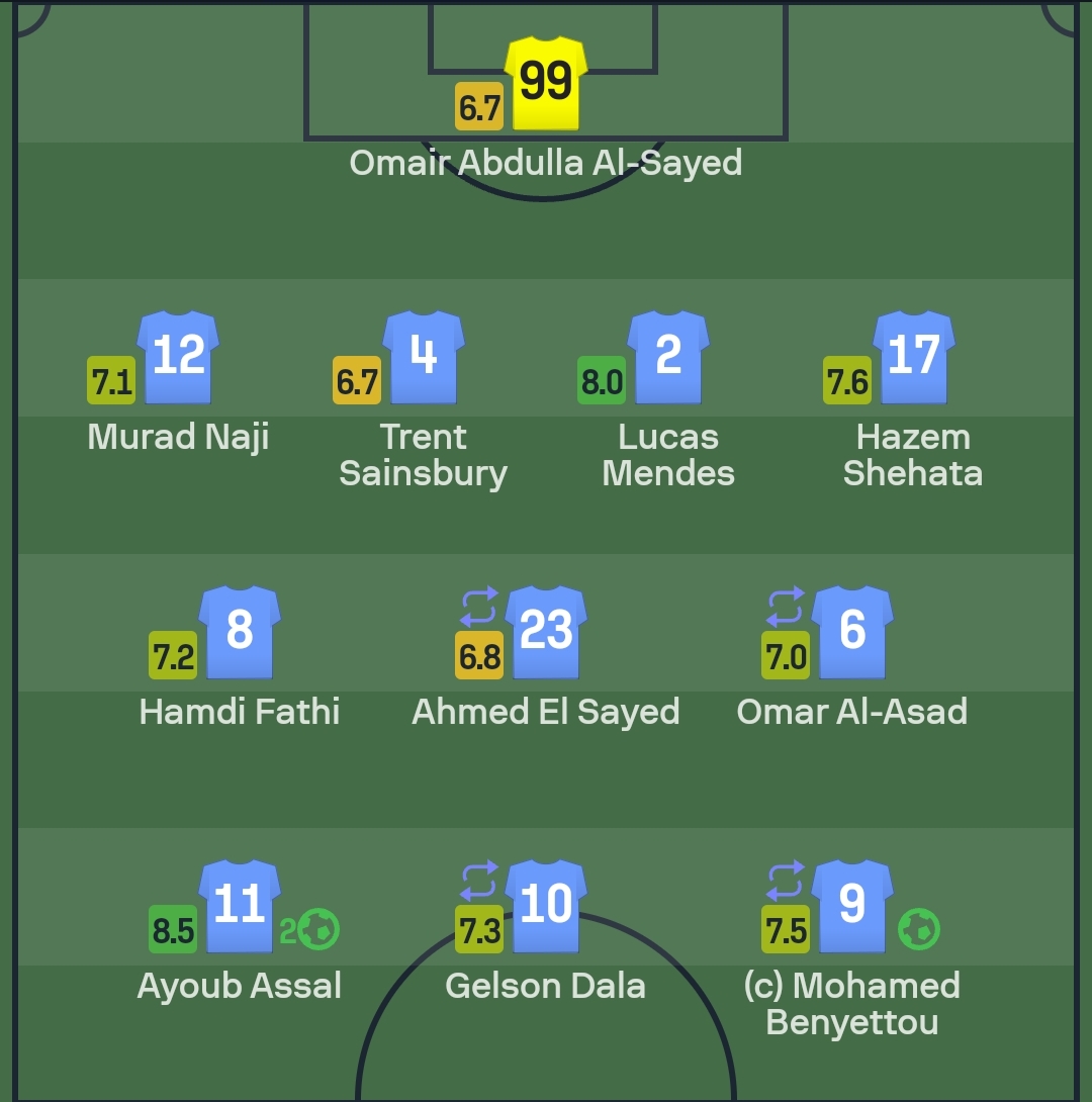 ولمس حمدي فتحي، الكرة 88 مرة وبلغت نسبة دقة تمريراته الصحيحة 87٪، كما أرسل 4 كرات طولية ناجحة من أصل 6.