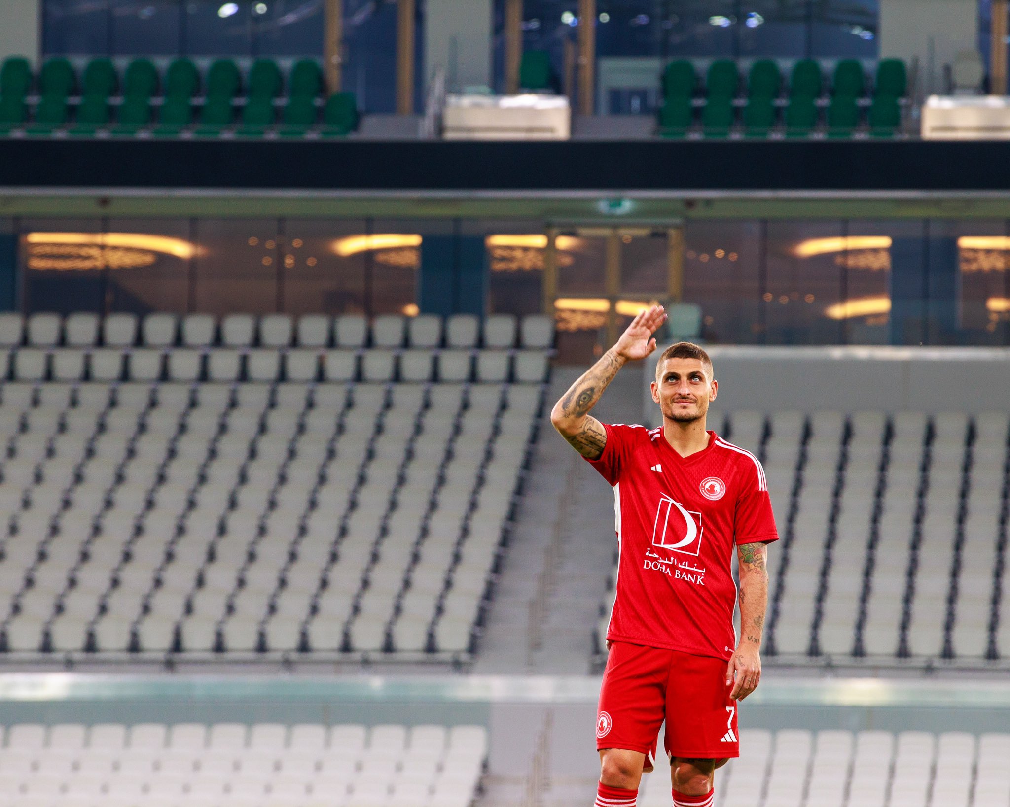ونشر حساب الرسمي لنادي العربي القطري، على موقع التواصل الاجتماعي “تويتر”، مقطع فيديو يظهر فيه الصحفي الإيطالي الموثوق فابريزو روماني، يلهي ظهور لاعب وسط إيطاليا ماركو فيراتي، وهو يرتدي قميص فريقه الجديد.