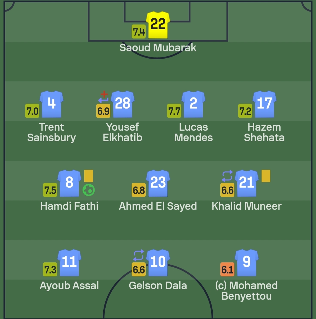ولمس حمدي فتحي، الكرة 47 مرة، ومرر 28 تمريرة صحيحة من أصل 35 بدقة وصلت إلى 80٪، وأرسل 3 كرات طولية صحيحة من أصل 7.