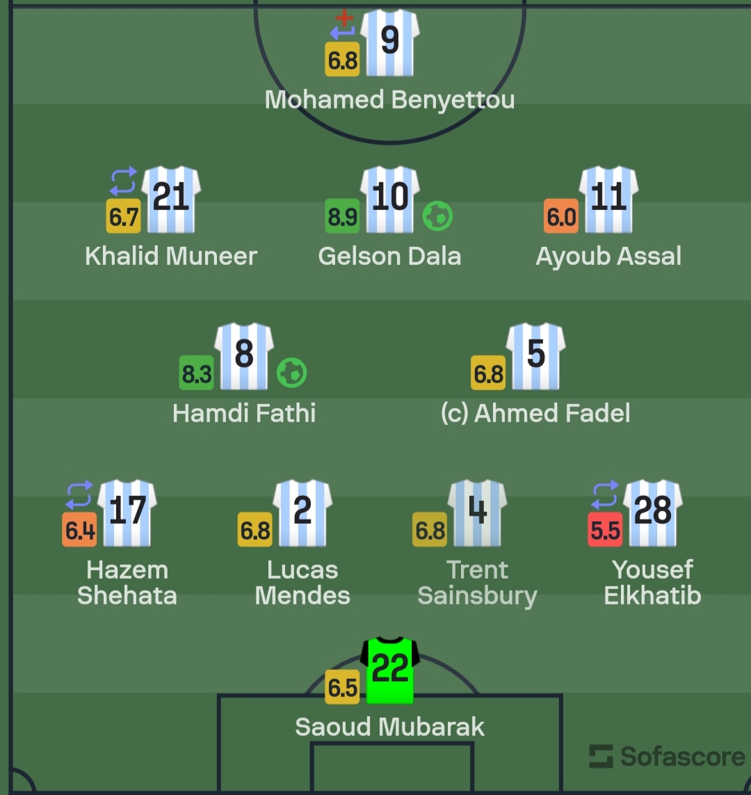 وبحسب شبكة “سوفا سكور”، فإن حمدي فتحي حصل على ثاني أعلى تقييم في المباراة بـ8.3، حيث سجل هدف وصنع آخر.