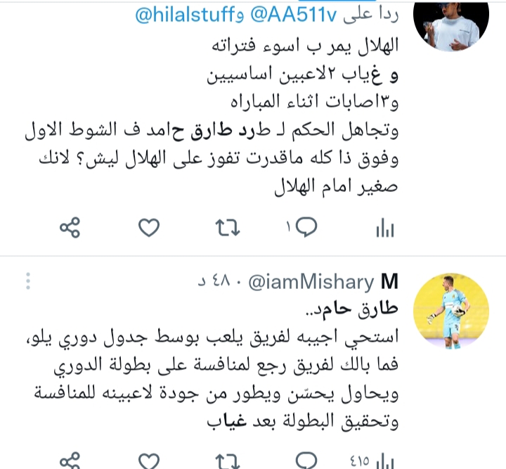 شن جماهير الفريق الأول لكرة القدم بنادي الهلال السعودي، هجومًا قويًا ضد الدولي المصري طارق حامد، لاعب وسط اتحاد جدة، بسبب تدخلاته العنيفة في مباراة الكلاسيكو.