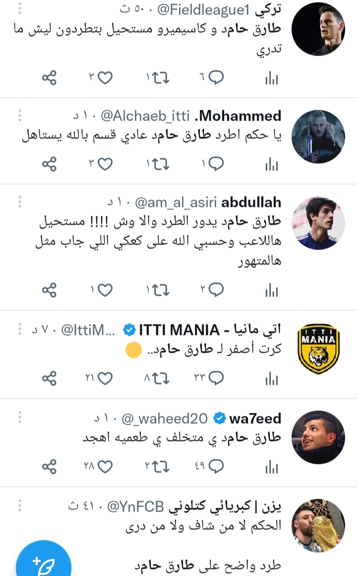 هجوم حاد من جماهير اتحاد جدة والهلال ضد طارق حامد بسبب تدخلاته العنيفة ..شاهد