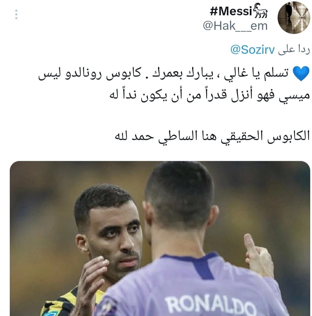 وواصل ثالث: “تسلم يا غالي، يبارك بعمرك كابوس رونالدو ليس ميسي فهو أنزل قدراً من أن يكون نداً له، الكابوس الحقيقي هو المغربي عبد الرزاق حمدلله.