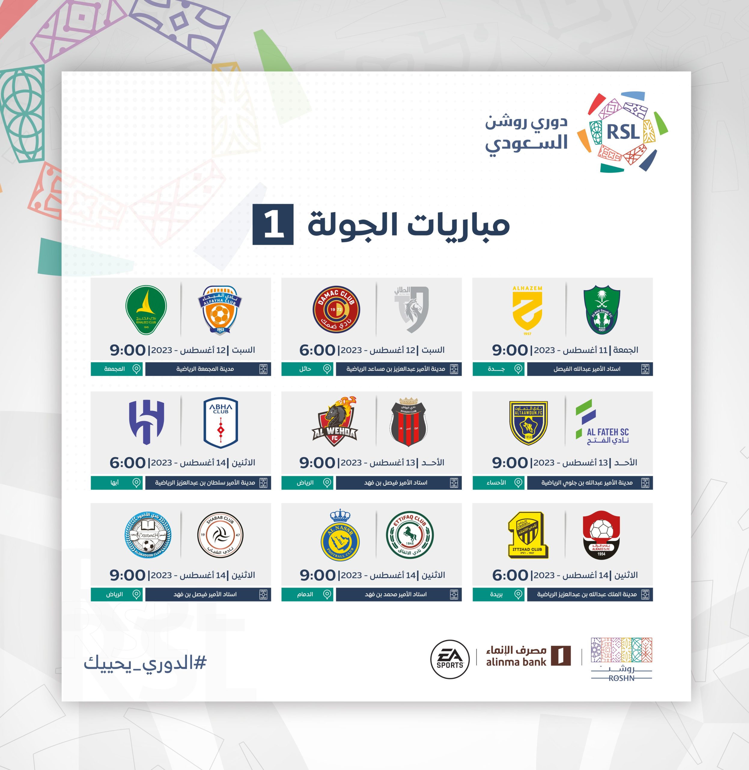 يشار إلى أن أندية الأخدود والرياض والاهلي والحزم، كانت قد تأهلت إلى الدوري السعودي للمحترفين الموسم الجديد 2023-2024، بعد تواجدهم خلال الموسم الماضي في بطولة دوري يلو.