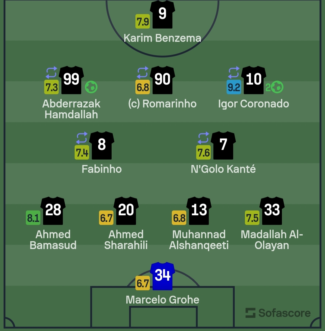 وبحسب شبكة “سوفا سكور” فإن كريم بنزيما حصل على تقييم 7.9 درجة، حيث كان ثالث أفضل لاعب في فريق الاتحاد السعودي.