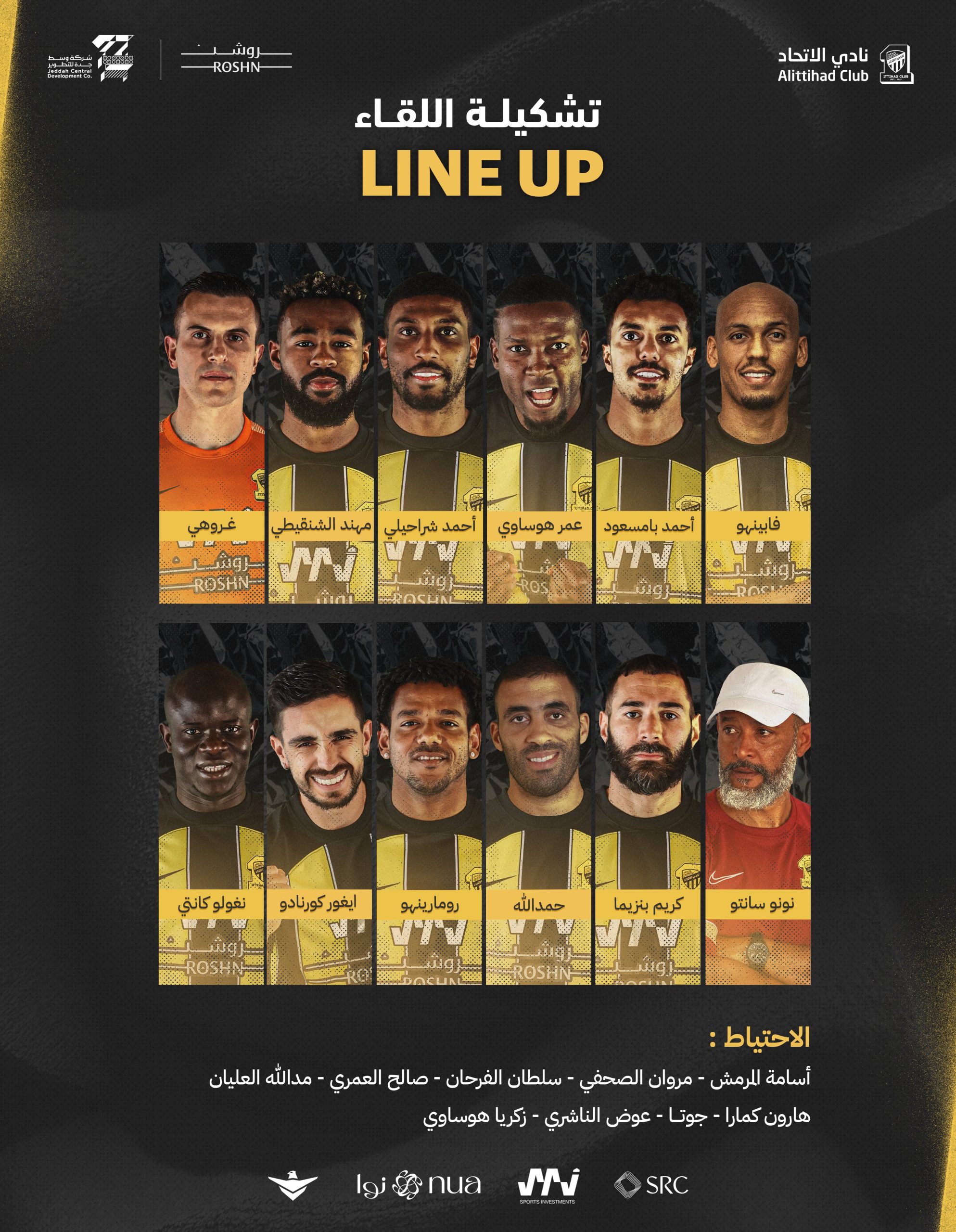 أعلن البرتغالي نونو سانتو المدير الفني للفريق الأول لكرة القدم بنادي الاتحاد، تشكيل فريقه، لملاقاة نظيره الطائي، ضمن منافسات مسابقة دوري روشن السعودي.