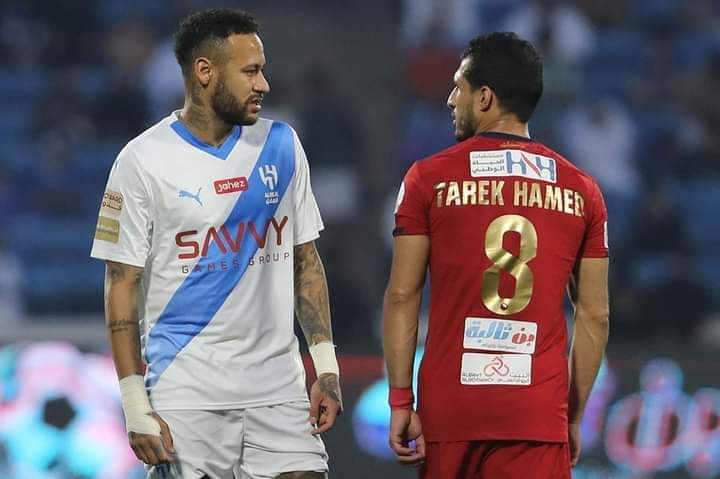 وشهدت المباراة عدة صدامات فردية بين طارق حامد ونيمار، ومنها مطالبة البرازيلي بطرد المحترف المصري في صفوف ضمك، بعد لمس الكرة بيديه.