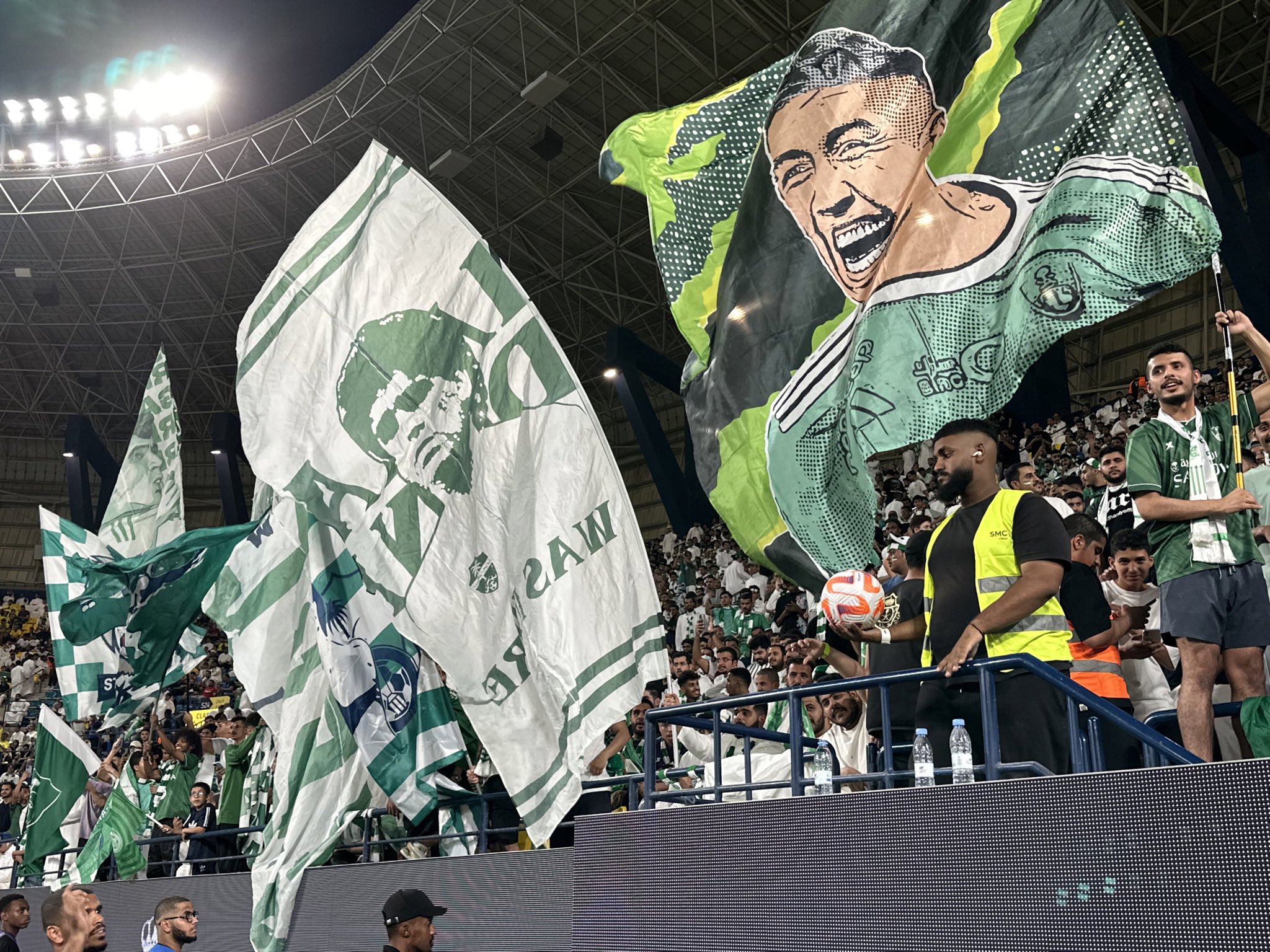 شهدت مدرجات ملعب جامعة الملك سعود، الذي يحتضن كلاسيكو الدوري السعودي لموسم 2023-2024، بين النصر والاهلي، ظهور خاص لـ مارادونا.
