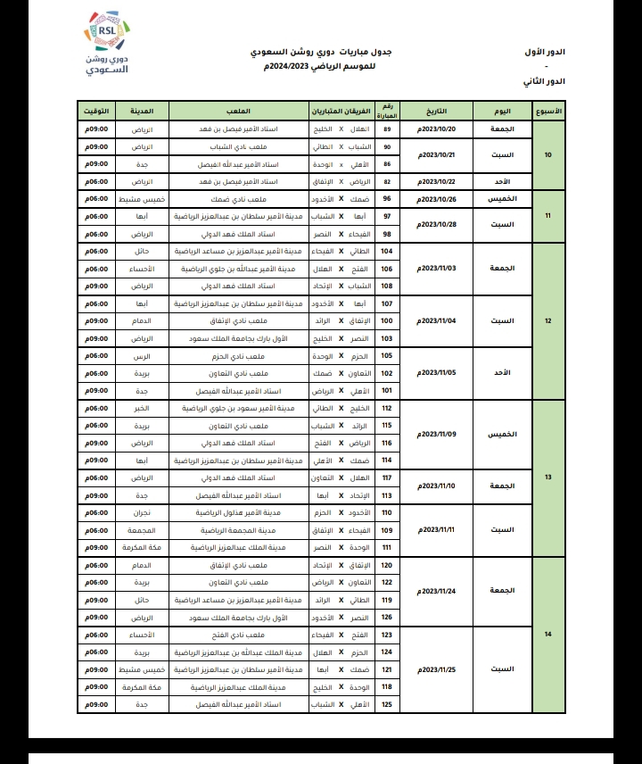 بالإضافة إلى بعض المباريات من الجولتين التاسعة والعاشرة من بطولة دوري روشن السعودي الموسم الحالي.