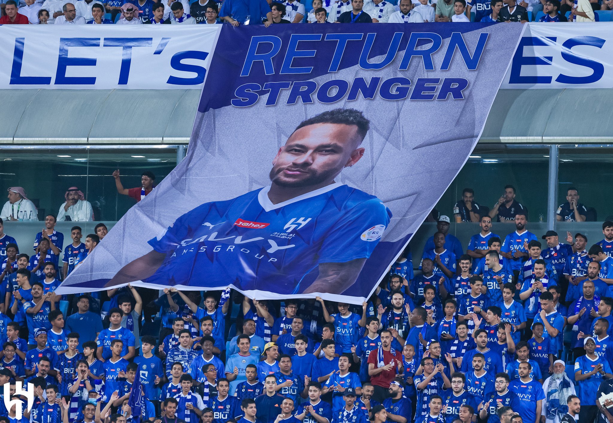 حرصت جماهير نادي الهلال السعودي، على دعم النجم البرازيلي نيمار دا سيلفا، بعد إصابته بالرباط الصليبي، خلال تواجدهم في مباراة الفريق ضد الخليج.