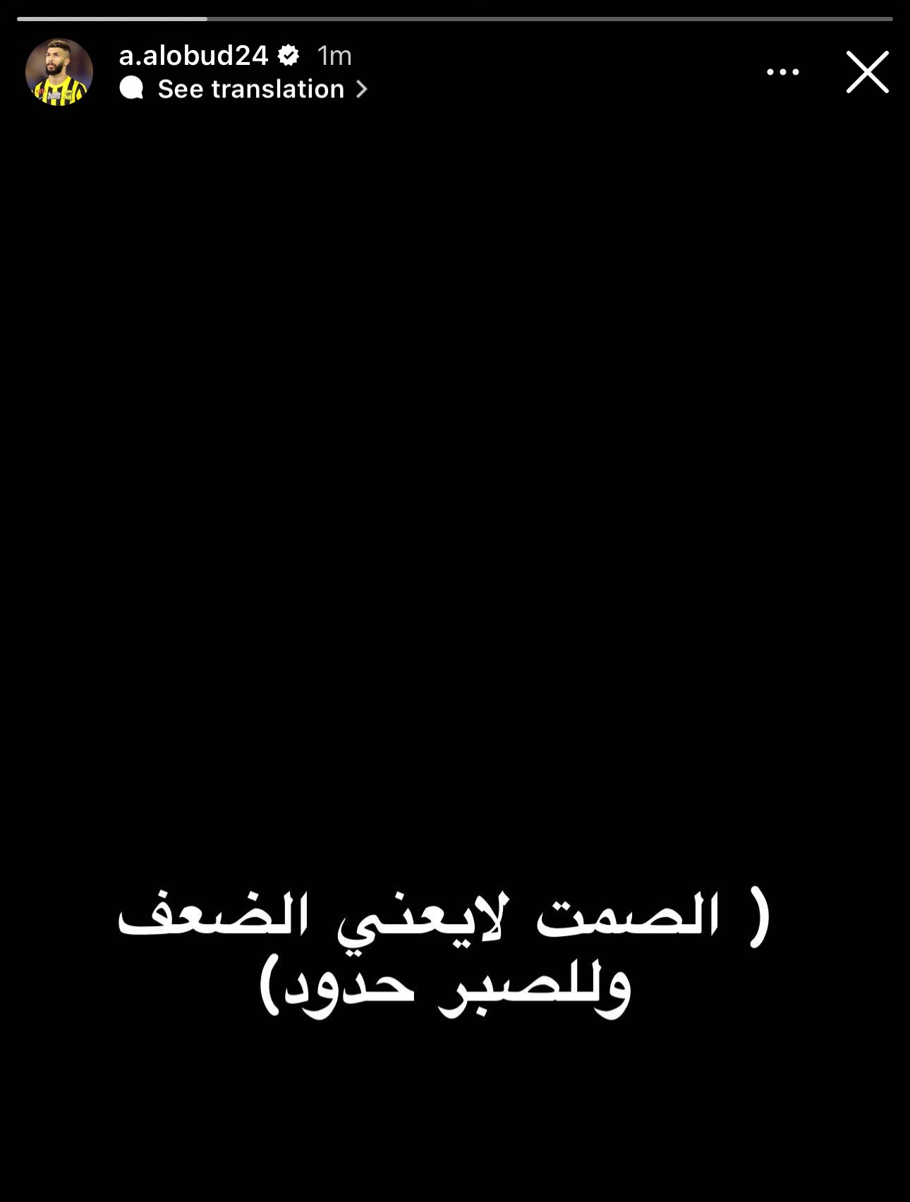 وكتب العبود عبر حسابه الرسمي على موقع التواصل الاجتماعي انستجرام: “الصمت لا يعني الضعف وللصبر حدود”.