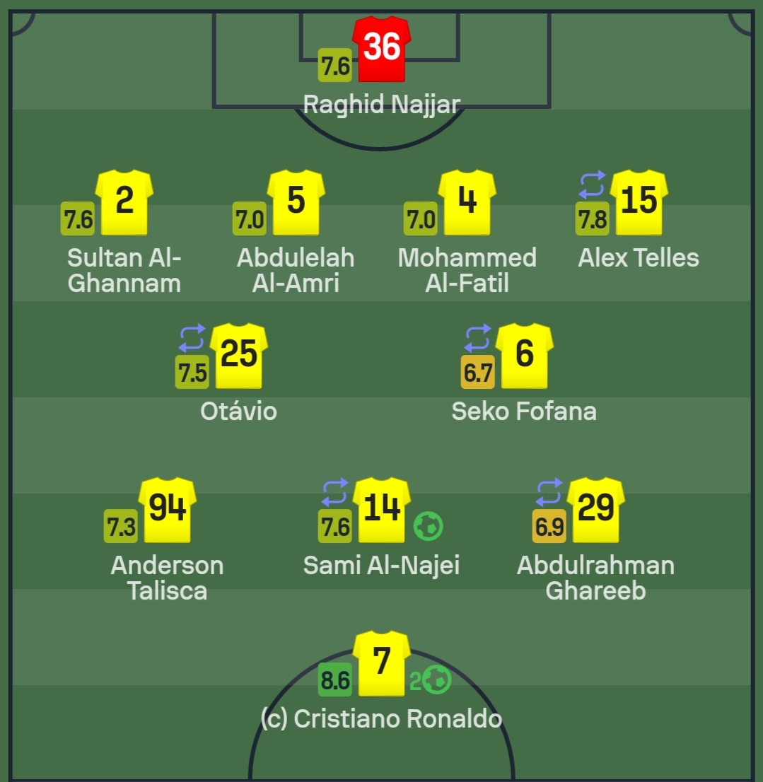 وأوضحت شبكة “سوفا سكور” المتخصصة في الإحصائيات والأرقام القياسية، التقييم الذي حققه كريستيانو رونالدو، في مباراة النصر ضد الأخدود.