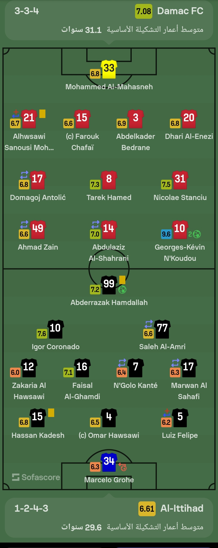 وسجل طارق حامد هدف ضمك الثالث في شباك الاتحاد، في الدقيقة 46 من عمر الشوط الثاني، ليحصل على تقييم 7,3 وفقًا لموقع سوفا سكور.