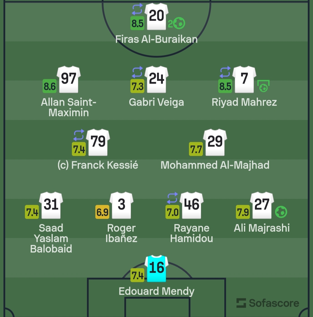 وبحسب شبكة “سوفا سكور” فإن ماكسيمان، كان أفضل لاعب في مباراة أهلي جدة ضد الفيحاء بتقييم 8.6، يليه رياض محرز وفراس البريكان بـ8.5.