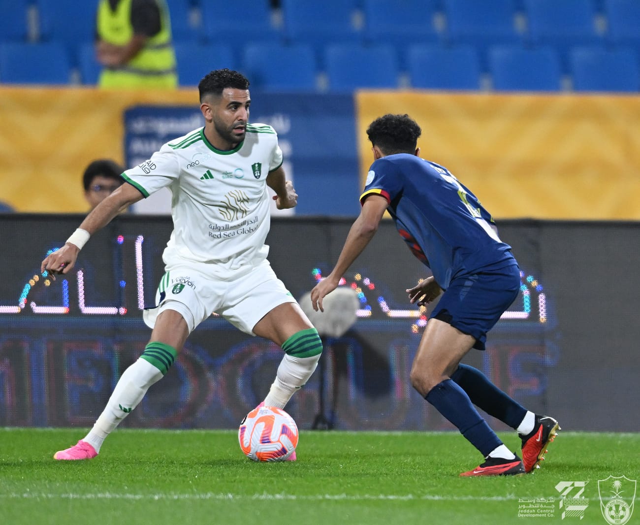 وسجل هدف الاهلي الأول لاعبه الجزائري رياض محرز في الدقيقة الأولى من الوقت بدلاً من الضائع للشوط الأول، لينهي النصف الأول من اللقاء لصالحه.