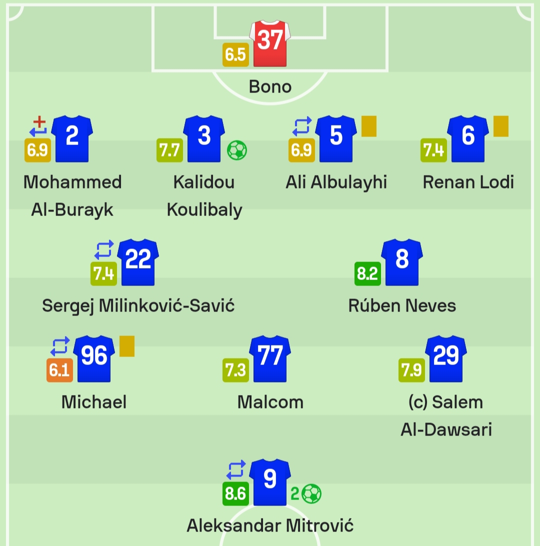 حصد الصربي ألكسندر ميتروفيتش نجم الفريق الأول لكرة القدم بنادي الهلال، على أفضل تقييم في مباراة الرائد، والتي جمعتهما اليوم في الدوري السعودي.