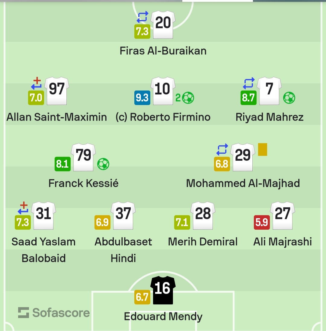 حصل فيرمينو على أعلى تقييم بين لاعبي الاهلي وفقًا لموقع “سوفا سكور” العالمي بـ9.3، ويليه الجزائري رياض محرز بـ8.7، وفرانك كيسيه بـ8.1.