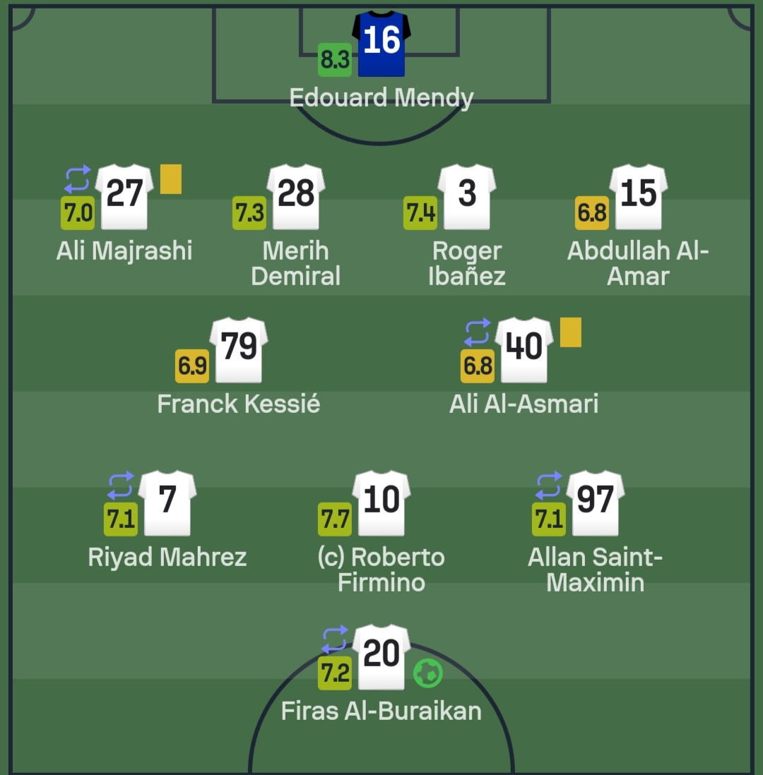 وكان تقييم إيبانيز، 7.4، كثالث أفضل لاعبي أهلي جدة، يليه ديميرال بـ7.3، بينما كان أسوأ لاعب في صفوف الفريق، كان عبدالله العمار بـ6.8.