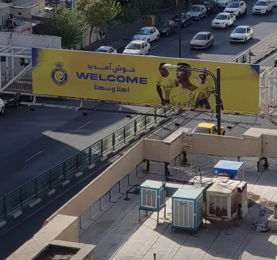 جماهير إيران رفعت لافتات ترحيب بالنجم البرتغالي كريستيانو رونالدو، بالإضافة إلى أن هناك العديد من الأطفال تجمهرت بصور للاعب النصر السعودي، وتم استقباله بحفاوة شديدة.