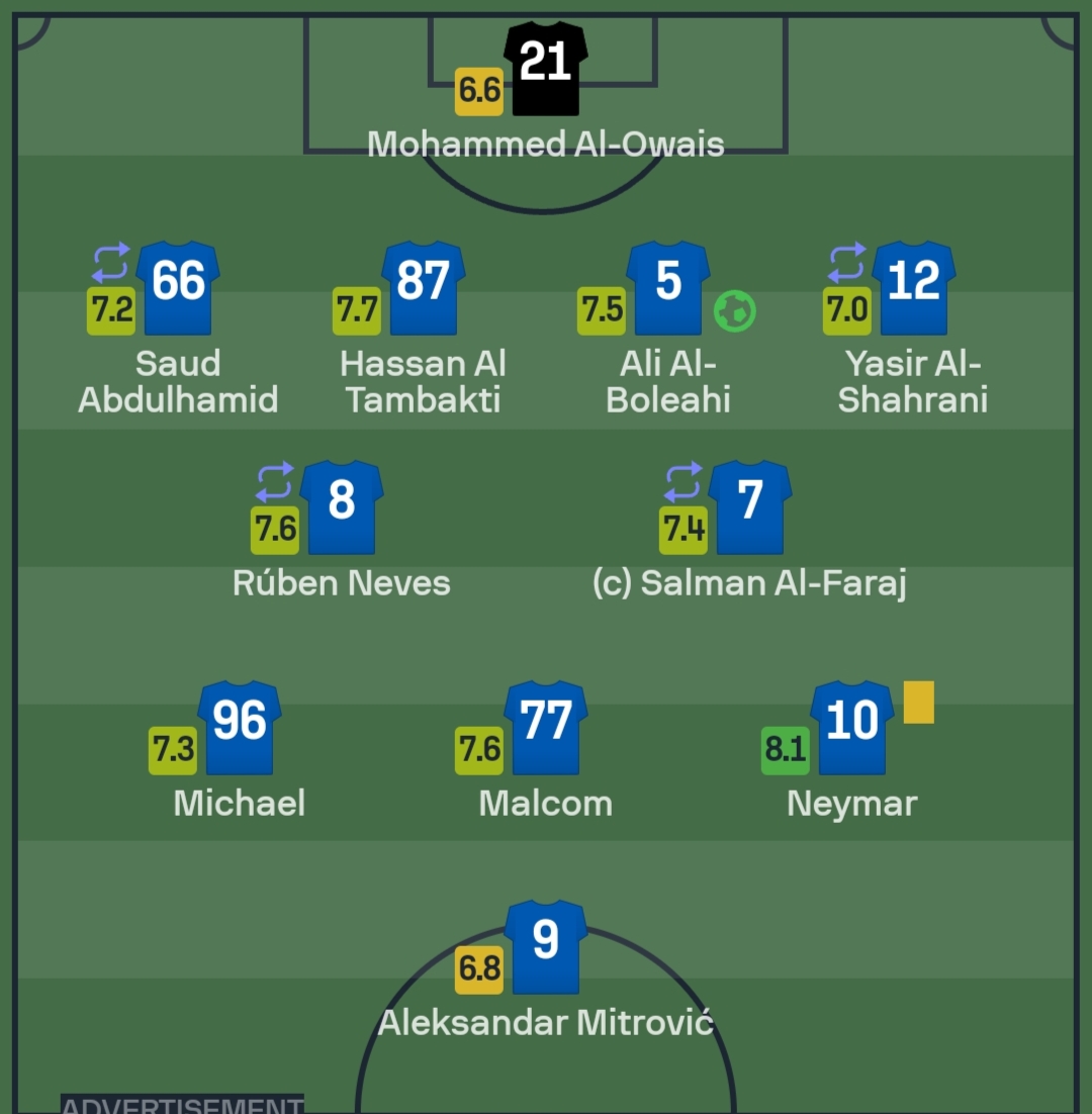 وبحسب شبكة “سوفا سكور”، فإن النجم البرازيلي نيمار، حصل على تقييم 8.1 درجة، حيث كان أفضل لاعبي الهلال السعودي في المباراة.