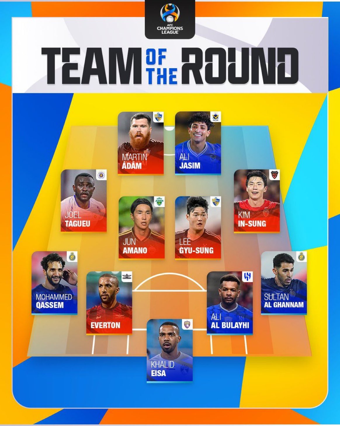 وشهدت التشكيلة المثالية في الجولة الأولى من دور المجموعات في دوري أبطال آسيا، تواجد سلطان الغنام ومحمد قاسم.